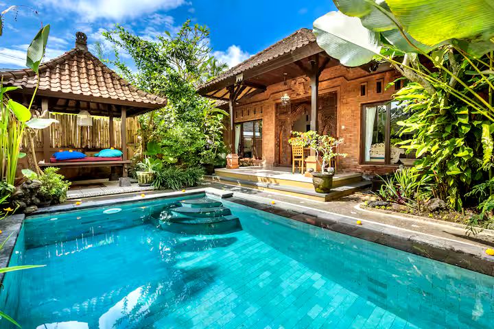 Villa pribadi dengan kolam renang, dapur, serta kamar mandi terpisah di tiap kamar untuk kenyamanan maksimal.